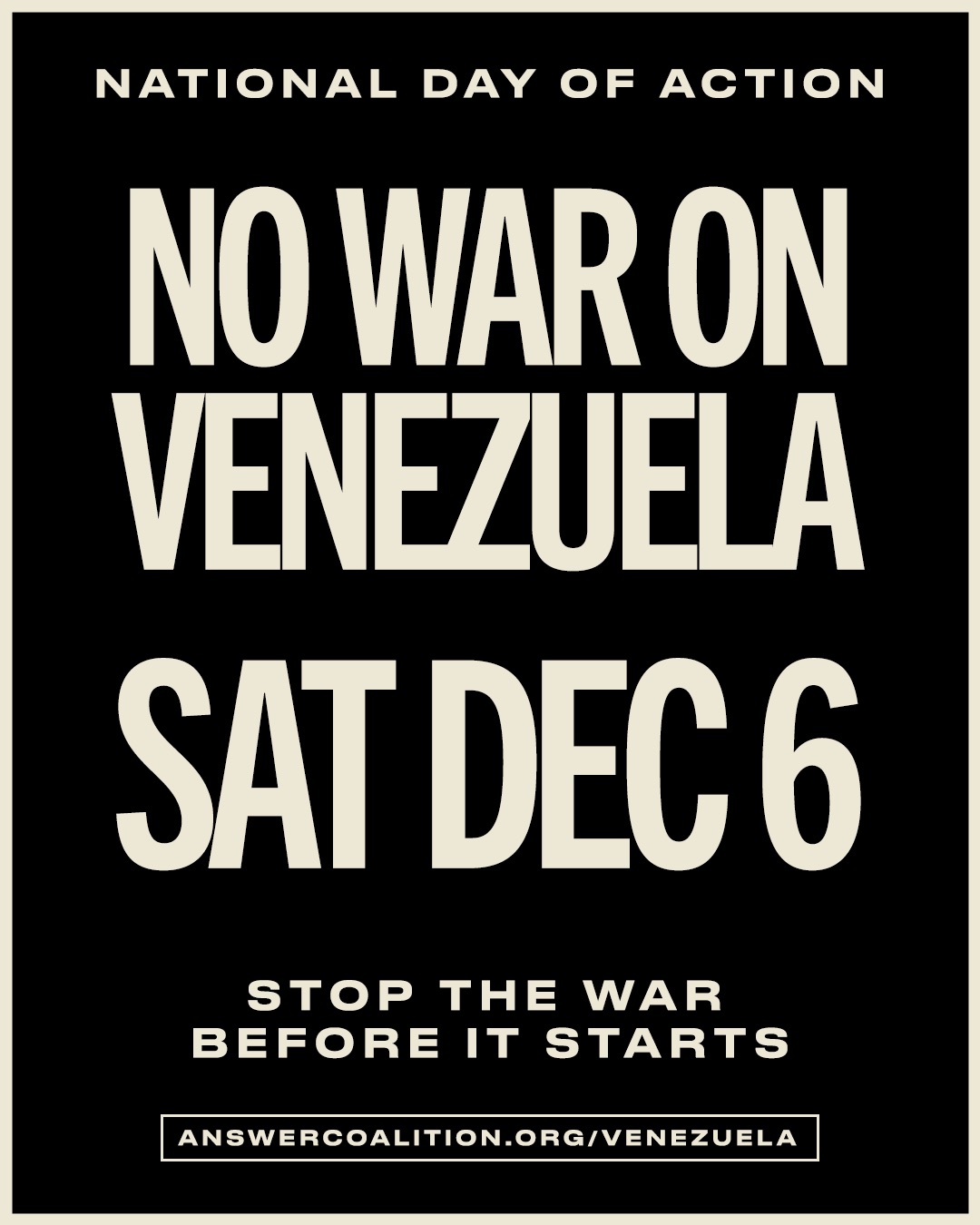 No War on Venezuela! National Day of Action Saturday, Dec. 6