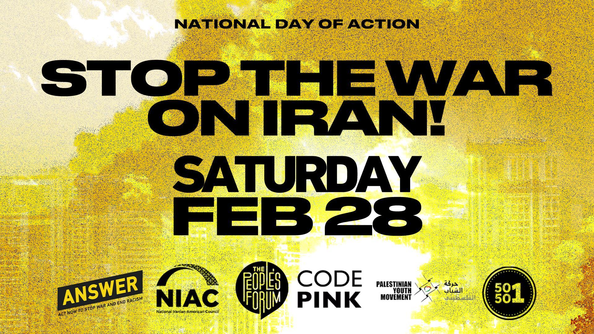 Initial co-sponsors of the action include: ANSWER Coalition, The People's Forum, Palestinian Youth Movement, National Iranian-American Council, Black Alliance for Peace, Democratic Socialists of America, American Muslims for Palestine, and CODEPINK.