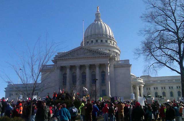 Today is the without a doubt the biggest day of demonstrations yet since workers and students took to the streets a week ago to protest Gov. Scott Walker’s assault on the public sector’s collective bargaining rights.