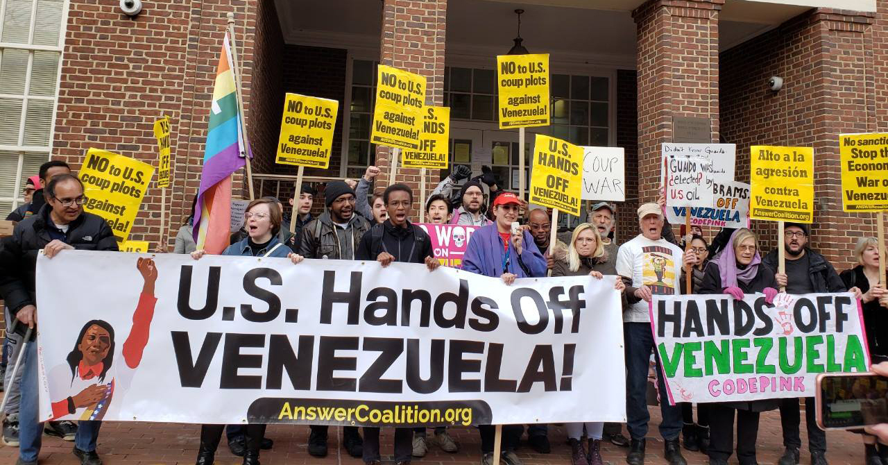 This week is critical. We are calling all people from around the country to come to the Venezuelan Embassy on Wednesday, April 24 and stay there in protection of it. There will be activities inside the Embassy and outside on the sidewalk in front of it. Please use the form below to join this effort.