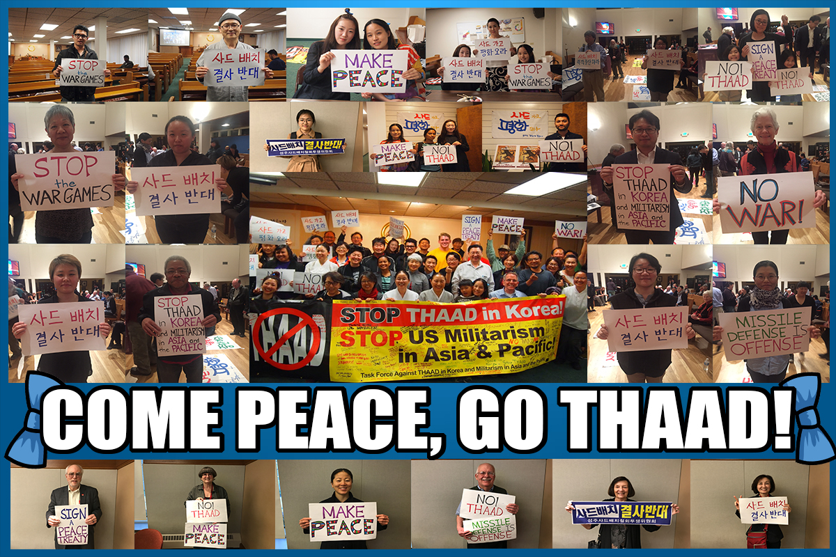 The Task Force to Stop THAAD in Korea and Militarism in Asia and the Pacific has just completed a nationwide speaking tour featuring the Rev. Sounghey Kim, co-chair of the Seongju Struggle Committee to Stop THAAD deployment, to increase knowledge among people in the United States about the struggle against the deployment of the U.S. THAAD missile system to Korea.